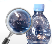 Bei Flaschen aus dem PET-System ist das Mindesthaltbarkeitsdatum (MHD) am oberen Flaschenhals eingelasert. Die Chargennummer steht dort direkt unter dem MHD.